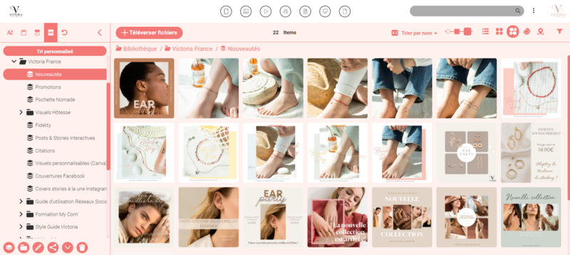 “Customization is very important. We’re a jewelry brand, so the look and feel of the platforms we use is essential,” says Pauline. “We called our Canto library ‘My Com’ because it is a tool to help our consultants communicate with their customers and followers on social media. We also changed the colors to present a light pink space aligned with our brand charter. It is instantly recognizable as a Victoria space by our consultants.”